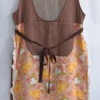 Used 切り替えデザイン デニム エプロンワンピース コットン ジャンスカ クマ総柄 レース ヴィンテージ ブラウン レトロ ビ