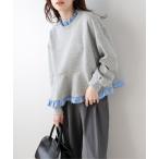 トレーナー スウェット ダブルフリル ペプラムトップス レディース