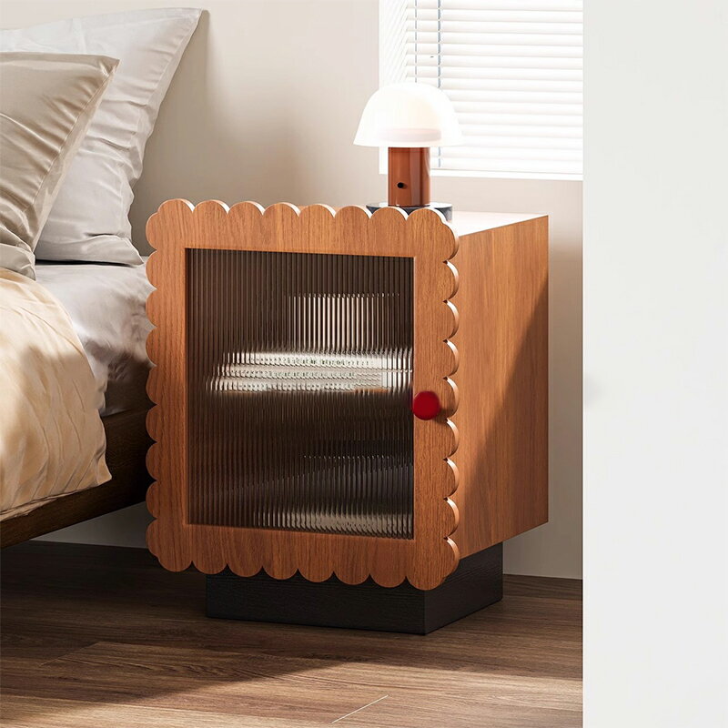 【全商品3%OFF】 CAGUUU ユニークビスケットデザイン 木製ナイトテーブル 2段収納キャビネット 小型家具 北欧風サイドテーブル コンパクトサイズ 多機能 寝室用 リビング用
