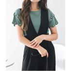 tシャツ 袖チュールフリルTシャツ レディース