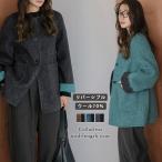 コート ミドルコート リバーシブル ウール混 ノーカラー バイカラー 配色デザイン 【lsotaw25-1787】【予約販売:12月4日入荷予定順次発送】【送料無料】宅込