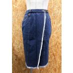 ビッグジョン BIG JOHN デニムラップスカート ベルト×ボタン カットオフ ひざ丈 裏地無し ロゴラベル付き 綿100% M ブルー 青 レディース