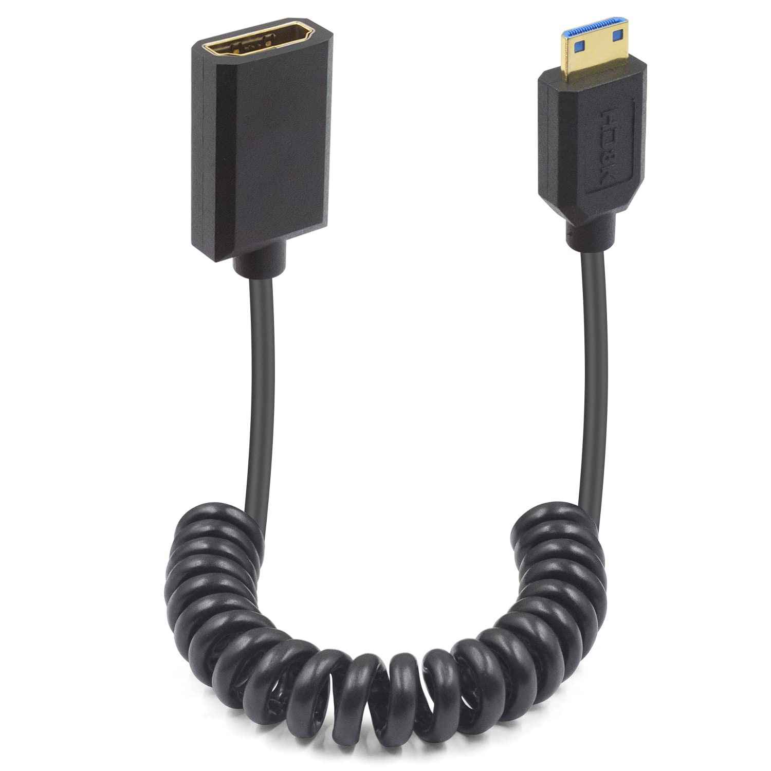 Thsucords 8K 右角 L型 ミニ HDMI to HDMI コイルケーブル、 90度 HDMI to Mini HDMI オス-オス スパイラルコード 8K@60Hz 4K@120Hz 48Gbps Nikon/Canon デジタル一眼レフカメラ/ビデオカメラ/ノートパソコン/タブレ