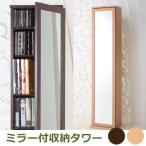 本棚 扉付き おしゃれ スリム 省スペース ミラー付収納タワー 送料無料