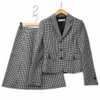 STUDIO BILL BLASS ビルブラス ウール シルク ブレンド ラメ入り 千鳥格子 スカート スーツ セットアップ 7AR ブラック × ホワイト レディ