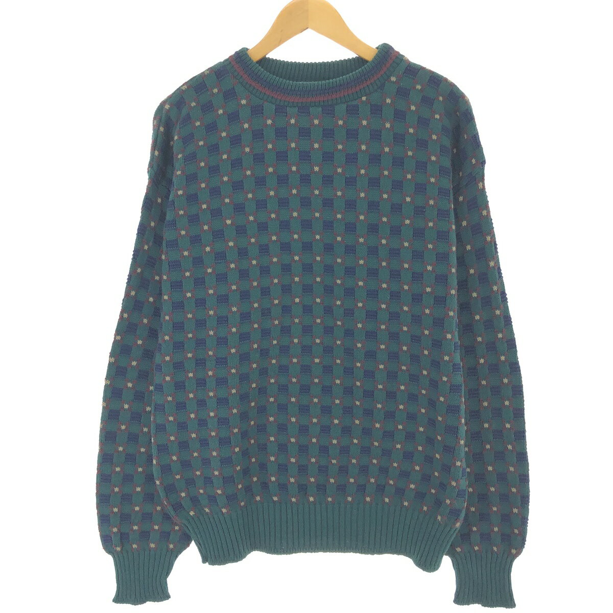 90年代 USA製 BILL BLASS コットン ニット セーター アーガイルチェック (メンズ L) 中古 古着 S2567