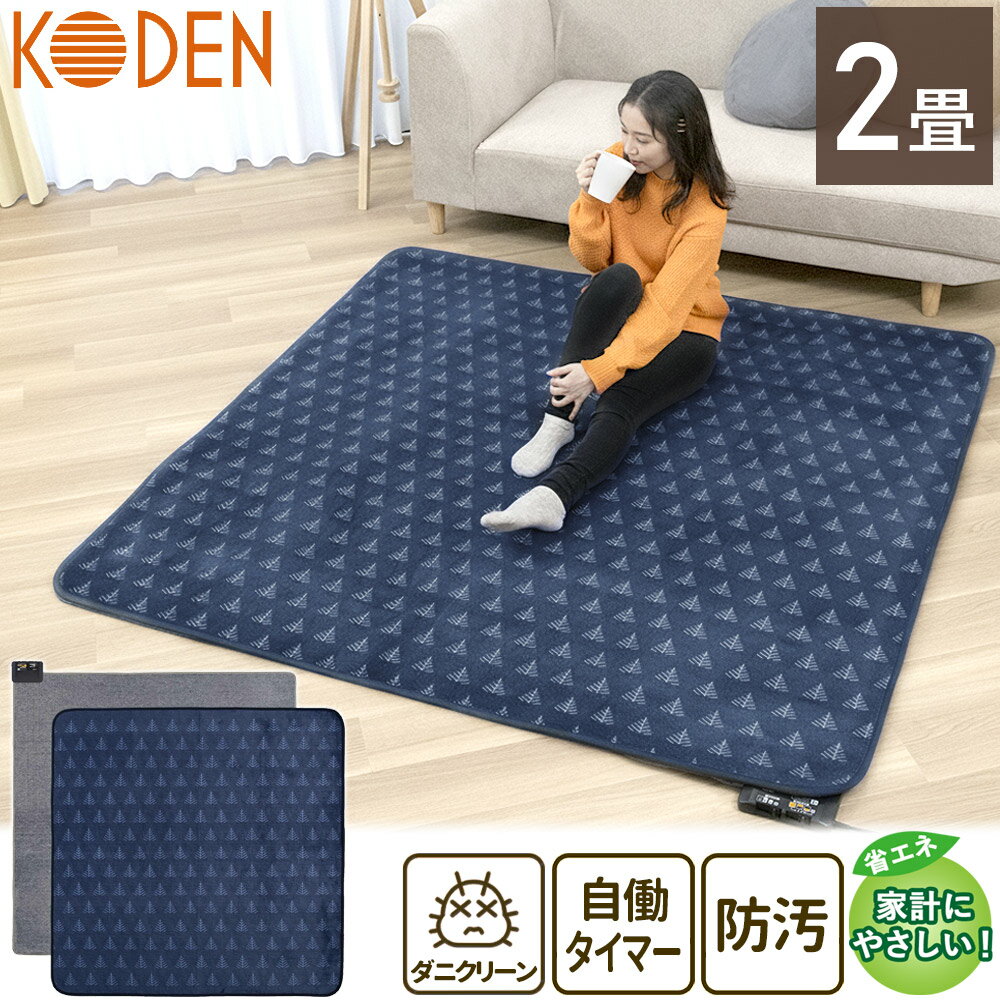 ≪衝撃の99%OFF★12/1先着クーポン限定≫ 広電 ホットカーペット 1畳 2畳 ラグ 長方形 フローリング 北欧風 約180×180cm ネイビー コントローラー カバーセット VWU201H-NKR KODEN 暖かい 足元 暖房 温度調節 簡単操作 ホットマット 電気マット 電気カーペット 丸洗い