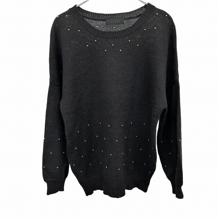 【楽天スーパーSALE限定!! \★35%OFF★/対象商品|12月4日(木)20時00分〜12月11日(木)01時59分まで】【中古】ジーナシス JEANASIS ニット セーター ビーズ 丸首 長袖 プルオーバー 無地 ロングスリーブ アクリル×ウール ブラック 黒 レディース