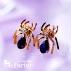 スパイダー(蜘蛛)デザイン ペアシェイプカット・パープルキュービックジルコニア&クリアカットビーズ イエローゴールドカラー レディース スタッドピアス