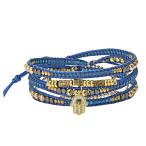 【並行輸入品】AeraVida きらめく真鍮とキュービックジルコニア ハムサハンドビーズ ブルーレザーラップブレスレット AeraVida Sh