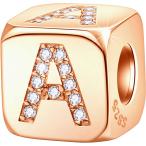 【並行輸入品】ローズゴールドダイスチャーム 26文字ビーズ キュービックジルコニア付き 925スターリングシルバー イニシャル A-Z 大文字アルファ