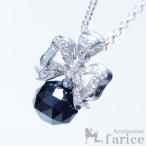 ビーズカットオニキス キューティー蝶結びリボンラインキュービックジルコニアシルバーペンダント (レディ−ス)