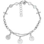 【並行輸入品】スターリングシルバー 聖ベネディクトブレスレット レディース 十字架 ダイヤモンドカット ビーズ キュービックジルコニア ロジウム 7-