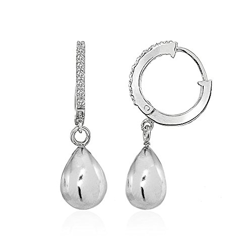 【中古】【未使用・未開封品】スターリングシルバー 光沢キュービックジルコニア ティアドロップビーズ ダングルレバーバックイヤリング