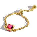 【並行輸入品】キュービックジルコニア リンクチェーン ステートメントリング ダングルビーズボール付き 18Kゴールドメッキ 調節可能なテールフィンガー