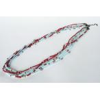 紅女 joncher ビーズ・スワロフスキー6連ロングネックレス レッドライトブルー