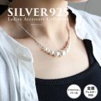 シルバー925 パールネックレス スワロフスキーパールネックレス 不揃いビーズネックレス シルバー ホワイト 爆買