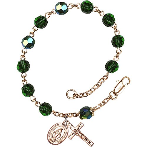 【中古】【未使用・未開封品】14?ktイエローゴールドFilled Rosary Tin Cutオーロラビーズブレスレット6?mm Mayグリーンスワロフスキー、オーストリア、十字架SZ 5?/ 8?x