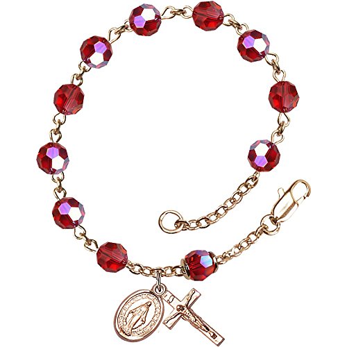 【中古】【未使用・未開封品】14?ktイエローゴールドFilled Rosary Tin Cutオーロラビーズブレスレット6?mm 7月赤スワロフスキー、オーストリア、十字架SZ 5?/ 8?x 1?/ 4