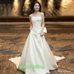 ウェディングドレス ウエディングドレス Aラインドレス ビスチェ ベアトップ サテン パールビーズ 二次会 結婚式 前撮り ブライダル 花嫁 ロングドレス