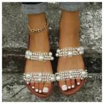 【並行輸入品】女性用フラットサンダル パールハンドメイド ビーズオープントゥ サンダル ボヘミアンスタイル 快適なフラットスリッパ 女性用 Fl