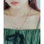 ネックレス フラワーパールビーズ2連ネックレス レディース