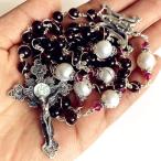 並行輸入品elegantmedical ハンドメイド スターリングシルバー ワイヤーラップ ガーネット&10mm リアルパールビーズ ロザリオ 十字架