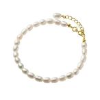 【並行輸入品】上品な14Kイエローゴールドパールビーズブレスレット 淡水養殖ホワイトパールブレスレット 女性用 お母様/ガールフレンド/奥様へのギフト