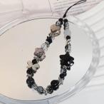 スマホ ストラップ 黒 ビーズ パール 星 スター キラキラ 韓国 リボン 手首 落下防止 iPhone キーホルダー チャーム 透明 おしゃれ Y2K レトロ