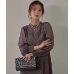 クラッチバッグ パーティーバッグ ビーズxパール刺繍モチーフ使いクラッチバッグ レディース
