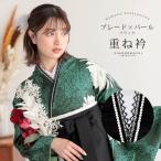 パール付き 重ね衿 伊達衿 単品「刺繍×パール ベージュ」日本製 コームピン付き 可愛い 豪華 成人式の振袖に 卒業式の袴や二尺着物に 重ね襟 (メール便不可)