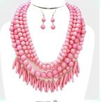 【並行輸入品】チャンキーピンク フクシア ビーズ パール ロング マルチレイヤード ストランド ネックレスセット Chunky Pink Fuc