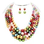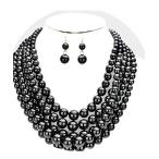 【並行輸入品】ブラックパール 5列マルチストランド レイヤードビーズ チャンキージュエリーネックレスセット Black Pearl 5 Row