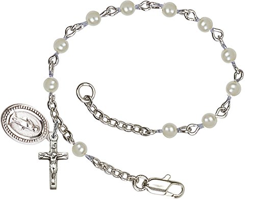 【中古】【未使用・未開封品】シルバープレートロザリオブレスレット4?mmハート人工パールビーズ