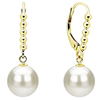 【中古】【輸入品・未使用】14?K黄色ゴールドホワイト淡水養殖高光沢パールビーズデザインlever-backイヤリング