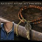 ネックレス メンズ 天然石 ウッドビーズ アクセサリー ブラス製マリアトップ
