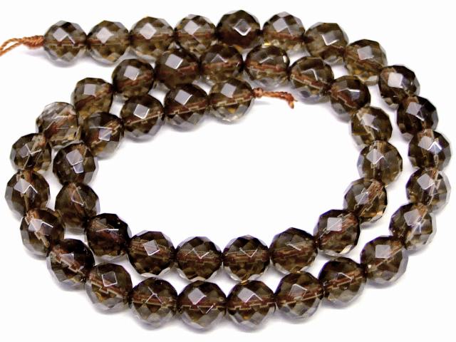 ≪g3-45M≫今月34%off●10mm●64面カット●スモーキークォーツ●鑑別済・本物保証●送料無料有●1連38cm 通し針、解説書、1mゴム付き●AA●ラウンド 丸玉●パーツ●ビーズ●ブラジル産●天然石●パワーストーン●