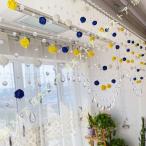 のれん ストリングのれん ビーズ付き ストリングカーテン 紐のれん 間仕切り アジアン雑貨 ネイビー/ライトブルー