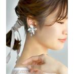 イヤリング パールとマットメタルのリーフイヤリング レディース