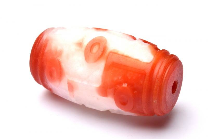 【30%OFF!】【1点物】マットな質感 南紅瑪瑙(ナンホーン)水晶共生 32x15mm 九眼天珠(貫通穴) ビーズ ハンドメイド _PC2958