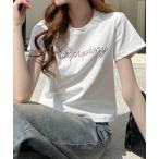 tシャツ ビーズ刺繍ロゴ 半袖Tシャツ レディース