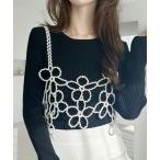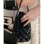 ハンドバッグ 「jouetie/ジュエティ」ロゴ巾着付 ビーズ編みバッグ