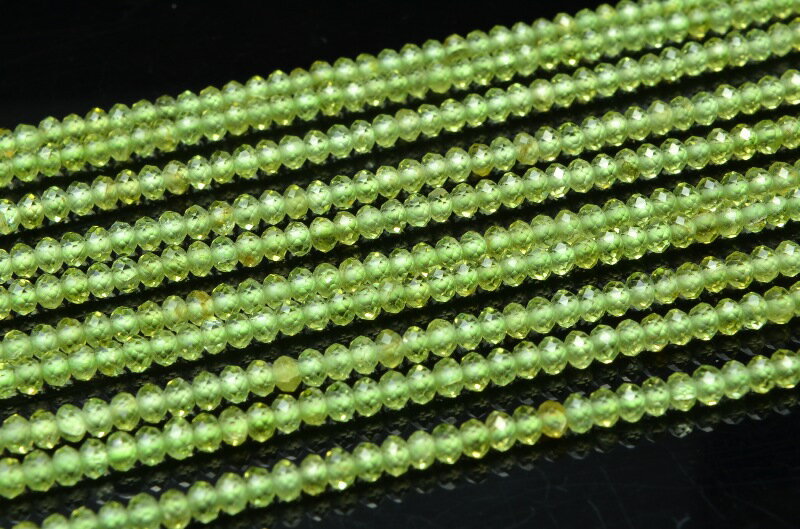 【10%OFF!】ペリドット 2x3mm ボタンカット 1連(約38cm)天然石 パワーストーン ビーズ パーツ _R5832-8