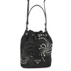 プラダ ハンドバッグ 巾着バッグ ラインストーン スタッズ ビーズ ナイロン 1BE067 PRADA 2wayショルダーバッグ 黒