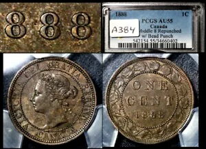 カナダ ラージ セント - 1888 ミドル 8 ビーズ パンチ AU55 非常に希少 (a384)