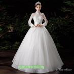 ウェディングドレス ロングドレス プリンセスラインドレス ハイネック ビーズ 長袖 二次会 結婚式 前撮り 花嫁 ウエディングドレス チュール ブライダル