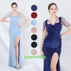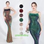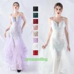 カラードレス マーメイドドレス ビーズ スパンコール キラキラ カクテルドレス ロングドレス ウエディングドレス 花嫁 結婚式 二次会 発表会 パーティードレス