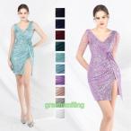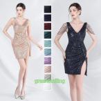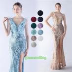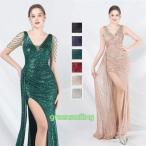 マーメイドラインドレス マーメードドレス スリット ファスナー キラキラ ビーズ キャバドレス カラオケドレス パーティードレス イブニングドレス