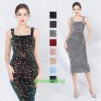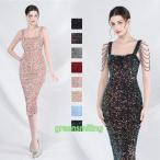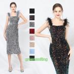 カラードレス マーメイドドレス ビーズ キラキラ スパンコール ミモレ丈ドレス ウェディングドレス 発表会 パーティードレス フォーマルドレス カクテルドレス