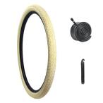 HUIOK 24 自転車タイヤ 24インチ 自転車タイヤ 折りたたみ式 ビーチクルーザー クリーム色 24x2.125 自転車タイヤ チューブとレバー